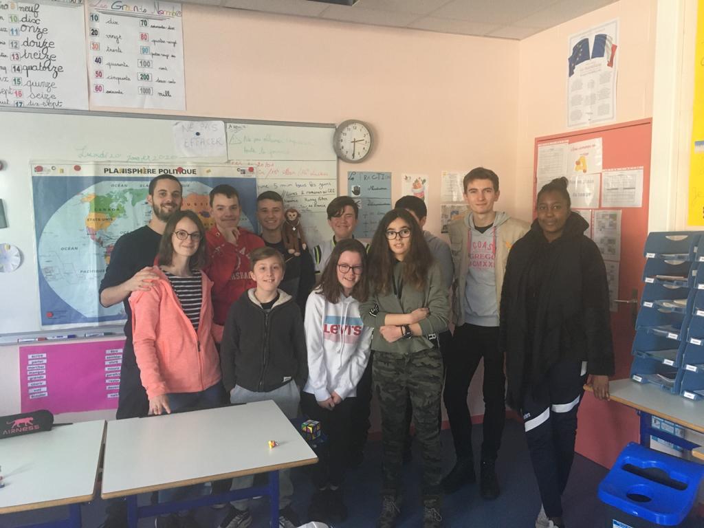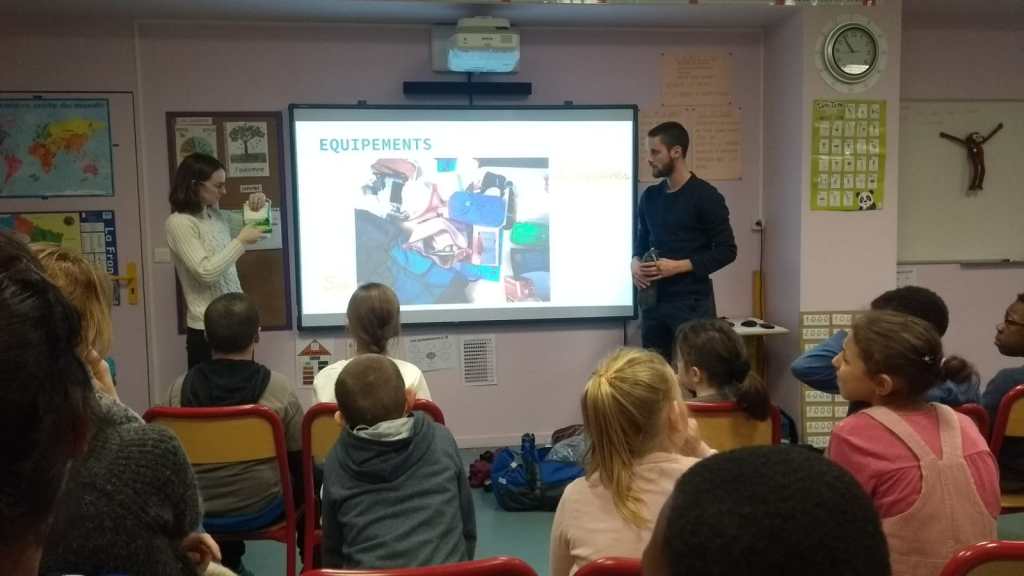 Les visites des enfants de l’association l’Enfant@l’hopital ont aussi ponctué cette dernière semaine. Afin de rendre nos échange plus vivants, nous sommes allés à leur rencontre à Châlons-en-Champagne (IME le Tremplin, IEM Eric Degremont) et à Saint-Leu-D’Esserent (classe ULIS du collège Vallès). Nous nous sommes présentés et avons discuté de notre voyage. Nous avons aussi ouvert notre sac pour leur faire découvrir quelques équipements : gourde filtrante, sac à viande, livre imagé ou encore couteau suisse.