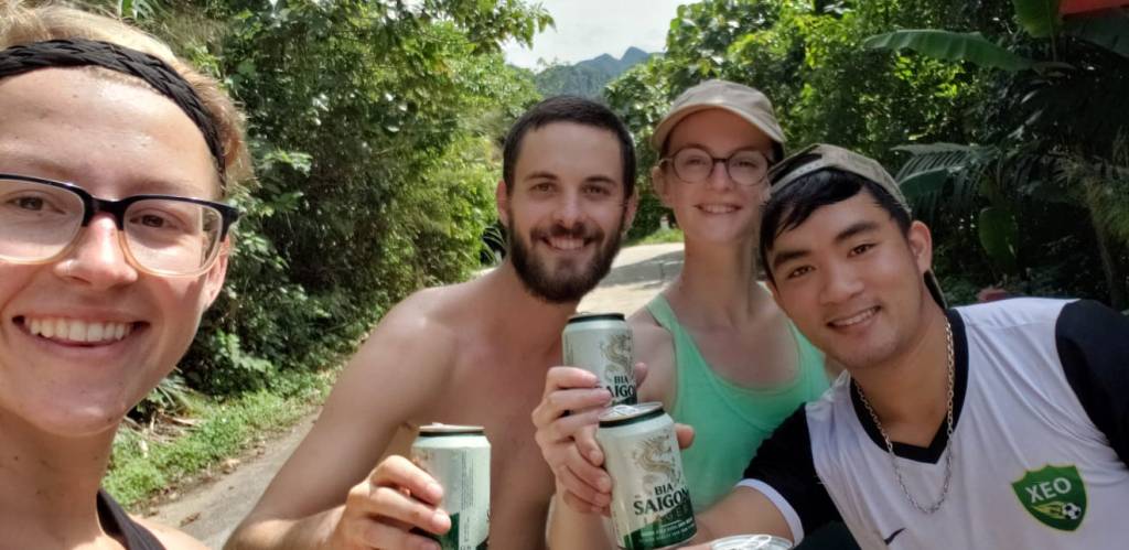 Une expérience hors du commun, vécue avec une équipe de choc. Avec nous, une autre touriste venue des Etats-Unis. Garde forestière dans le Montana, elle en connaissait un paquet sur la faune, la flore et ses dangers. Et notre guide, surnommé Messi. Au-delà de prendre soin de nous, il nous a permis d’en connaître un peu plus sur la vie des jeunes de la campagne vietnamienne : ses études de médecine avortées pour venir en aide à sa famille, les postes que lui ont ouvert l’apprentissage de l’anglais, sa ferme intention de mettre de l’argent de côté pour ouvrir une maison d’hôte, son regret de n’en avoir toutefois sûrement jamais assez pour acheter une voiture et aller voir un match de Manchester United, son récent mariage du haut de ses 25 ans, la possibilité d’enfin pouvoir habiter avec sa femme, son statut de cadet lui imposant de vivre toujours auprès de ses parents, sa volonté d’avoir très vite des enfants pour monter une équipe de foot, etc.