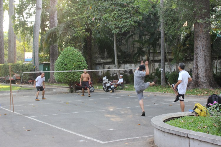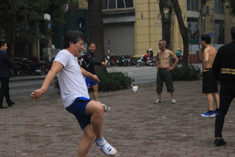 On profite aussi de cet article pour vous parler du Da cau. Nous ne l’avons pas expérimenté avec MyHanoi mais plutôt dans les rues et les parcs. Ce sport peut s’apparenter à une hybridation de foot, badminton et volley. Il s’agit de s’envoyer une sorte de volant au-dessus d’un filet et ce… avec les pieds ! Il est aussi beau à voir que complexe à pratiquer.