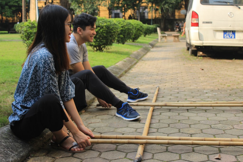 Il faut aussi beaucoup de coordination pour le Mhay Sap, la danse des bambous. Les Vietnamiens y jouent lors des grandes fêtes : la longueur de la piste est proportionnelle au nombre de participants. De notre côté, on a essayé une version courte, avec seulement 4 bambous. On vous laisse découvrir notre chorégraphie en vidéo…