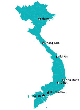 Nos aventures vietnamiennes se terminent à Hanoï, la capitale du Vietnam (numéro 7 sur la carte).