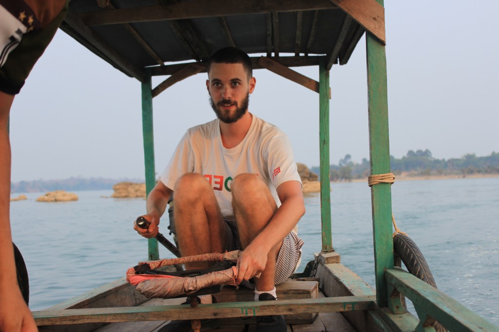 Avant de quitter le Laos, nous avons tout de même pris le temps de partir observer les dauphins qui vivent au Sud du pays. Ces dauphins de l’Irrawaddy ont élu domicile dans l’eau douce du Mékong. Au coucher du soleil, sur une petite embarcation, nous nous laissons dériver sur le fleuve en espérant les apercevoir. Silence et observation. Quelques minutes plus tard, ils nous dévoilent leur petit aileron dorsal et leur front proéminent ! Ce fut une première pour tous les deux que de voir ces gros cétacés nager en liberté.